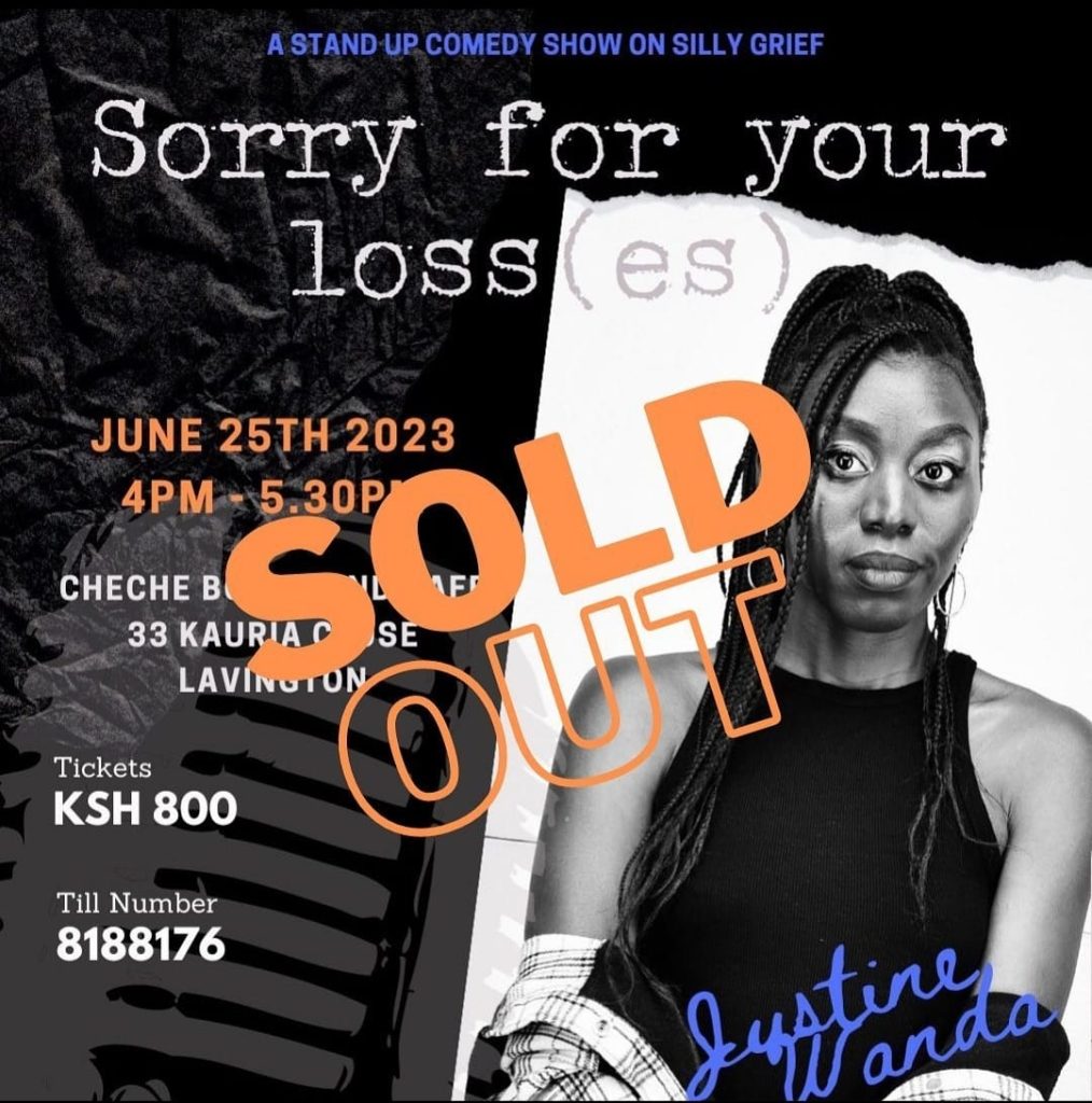 Justine Wanda, who is a crowd favorite in the comedy scene showcased her solo show “sorry for your loss (es) at the Cheche Bookstore to a sold out audience. The show which delves into dealing with grief was a well curated and crafted show for her cult fans who said it was the best work of Justine’s they had seen yet.