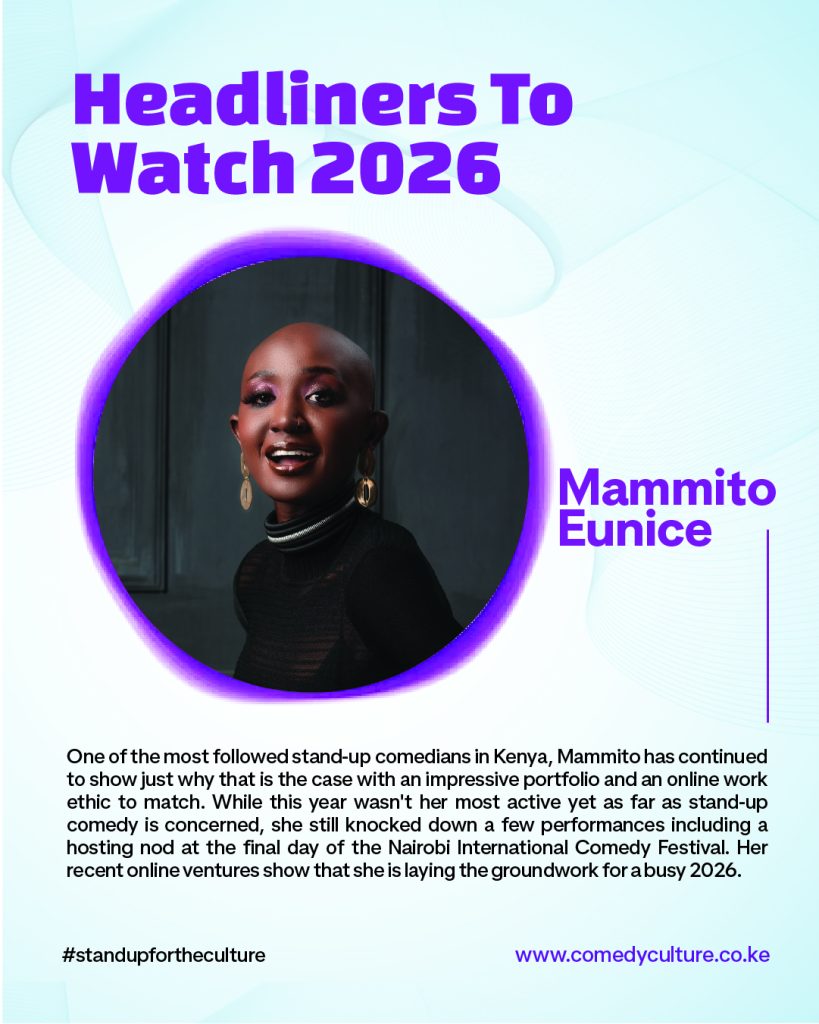 One of the most followed stand-up comedians in Kenya, Mammito has continued to show just why that is the case with an impressive portfolio and an online work ethic to match. While this year wasn’t her most active yet as far as stand-up comedy is concerned, she still knocked down a few performances including a hosting nod at the final day of the Nairobi International Comedy Festival. Her recent online ventures and social media activity show that she is laying the groundwork for a busy 2026.